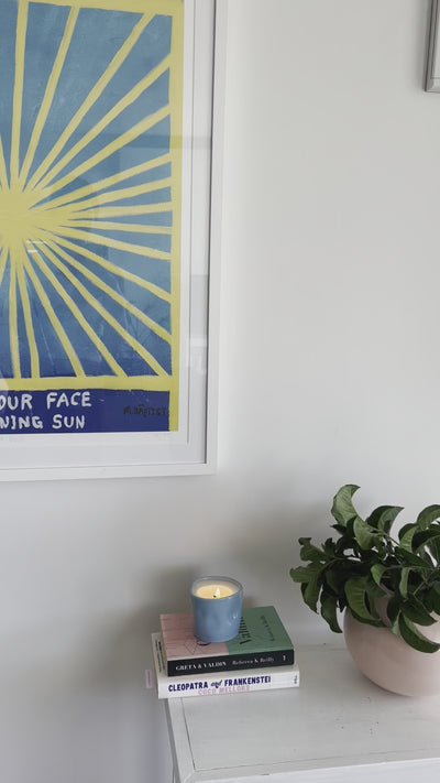 Handmade at our place with stoneware, featuring intentional indents making her deliciously cosy to hold. Hand glazed in fun colour-ways. The candle is hand-poured at our place using soy wax and infused with sweet french pear oil. You’ll enjoy 70 hours of relaxing burning time at your place.